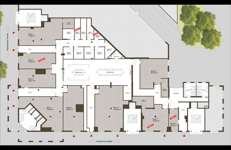 In ruhiger Lage entsteht auf insgesamt ca. 1.150 qm ein modernes und trendiges Büro- und Servicekonzept mit 9 abgeschlossenen Einheiten (teilweise mit zusätzlichen Lagerräumen in der Einheit) in Größen von ca. 40 bis 105 qm. Zusätzlich werden 10 weitere Lagerräume in Größen von je ca. 10 qm errichtet, welche auch separat angemietet werden können. Alle Mieteinheiten sind barrierefrei zugänglich.