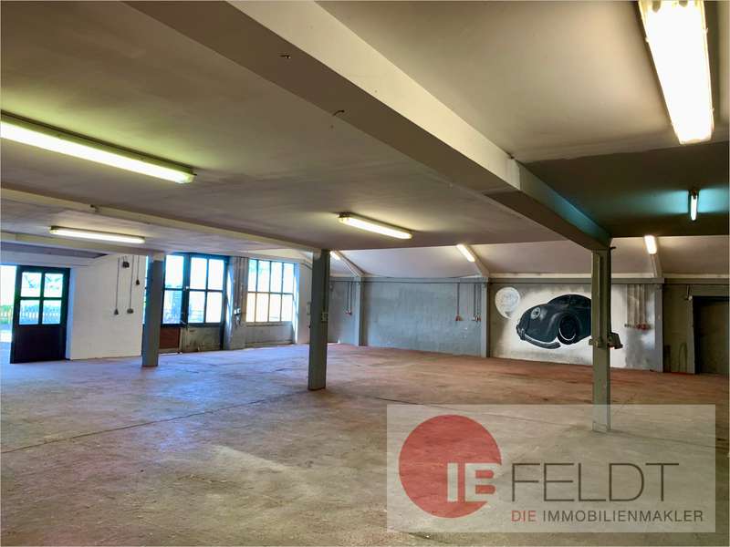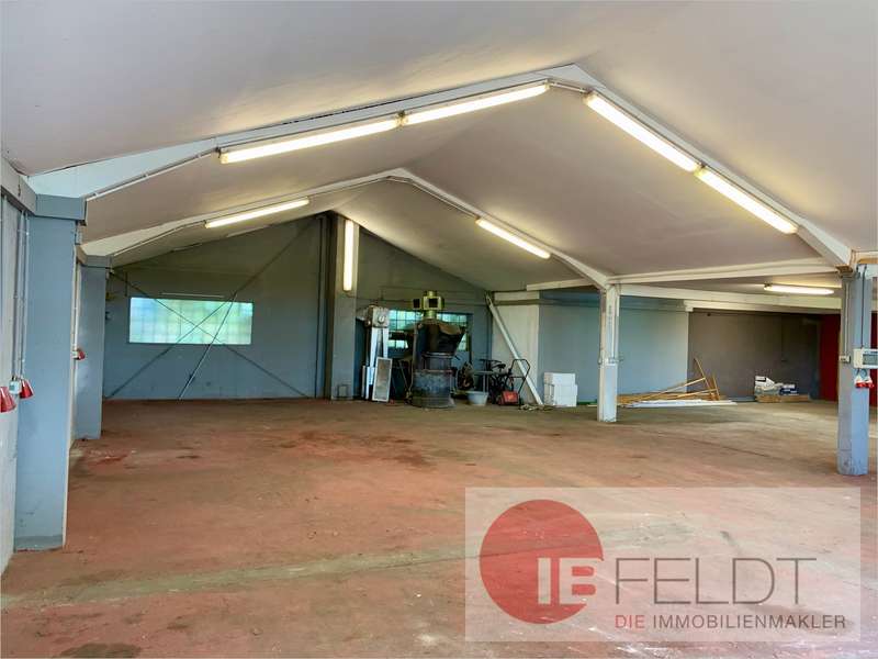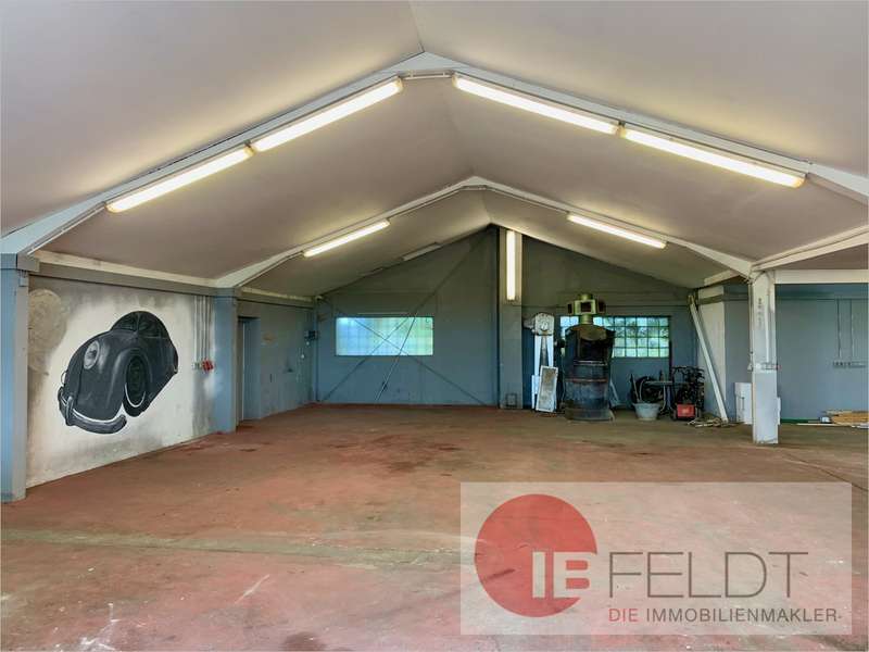 Die eingeschossige Halle ist ca. 330 qm groß und verfügt über Toiletten, Küche, Aufenthaltsraum sowie eine separate Garage.