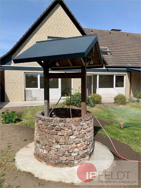 Sowohl das Wohn- als auch das Schlafzimmer verfügen über Türen auf die Terrasse und den abgetrennten Garten. Von dort gelangt man auf kurzem Weg in die Doppelgarage, zum Brunnen oder auf den überdachten Grillplatz. Die Wohnfläche beträgt rd. 144 Quadratmeter.