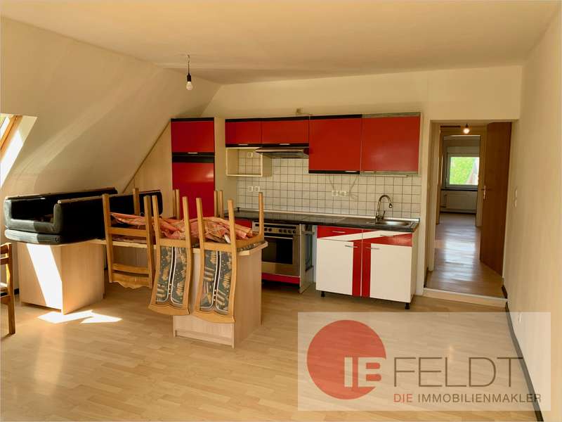Die Wohnung im Dachgeschoss (W2) ist über das gemeinsame Treppenhaus erschlossen. Dort befinden sich auf rd. 69 qm Wohnfläche der Flur, die Wohnküche, das Schlafzimmer, Kinderzimmer, des innenliegende Bad.