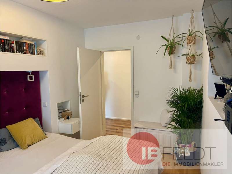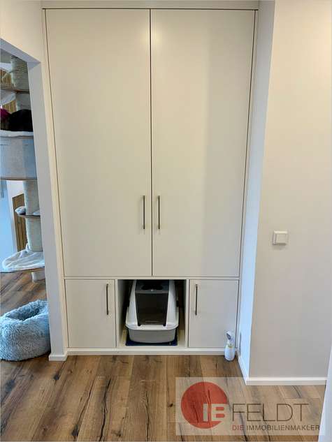 Vom hellen Schlafzimmer erreichen Sie das Ankleidezimmer (zusammen 1,5 Zimmer). Einen großen Schrank benötigen Sie deshalb nicht mehr. Sie werden die hochwertigen Einbauschränke genießen, die an einigen Stellen Stauraum anbieten – zusätzlich zu einem separaten Abstellraum. Die Garderode ist in einem separaten Raum versteckt. Freuen Sie sich auf viele Einbauleuchten, die bei der Neuverlegung der Elektrik verbaut wurden.