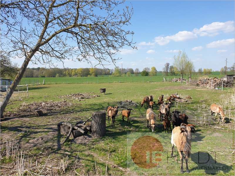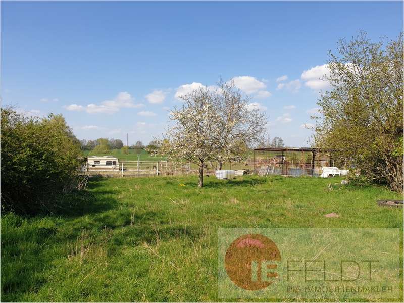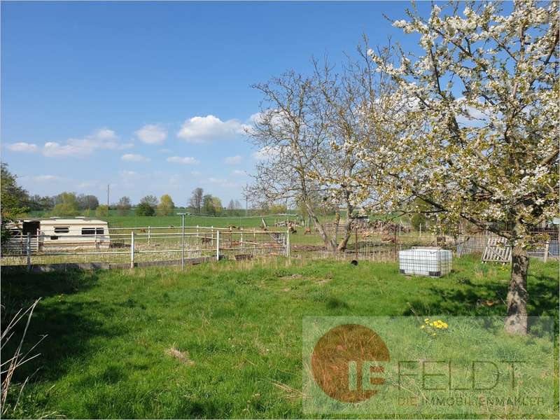 Seitlich steht ein schön gestaltbarer Gartenbereich zur Verfügung. Hinter dem Haus erstreckt sich das großzügige Grundstück, für das sich auch eine Nutzung als Pferdekoppel oder für die Haltung von anderen Tieren anbietet.