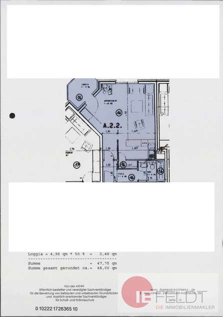 Größe: 48 qm, 1 Zimmer, Balkon, Preis: 102900 €, ProvisionsfreiEnergie-Ausweis: