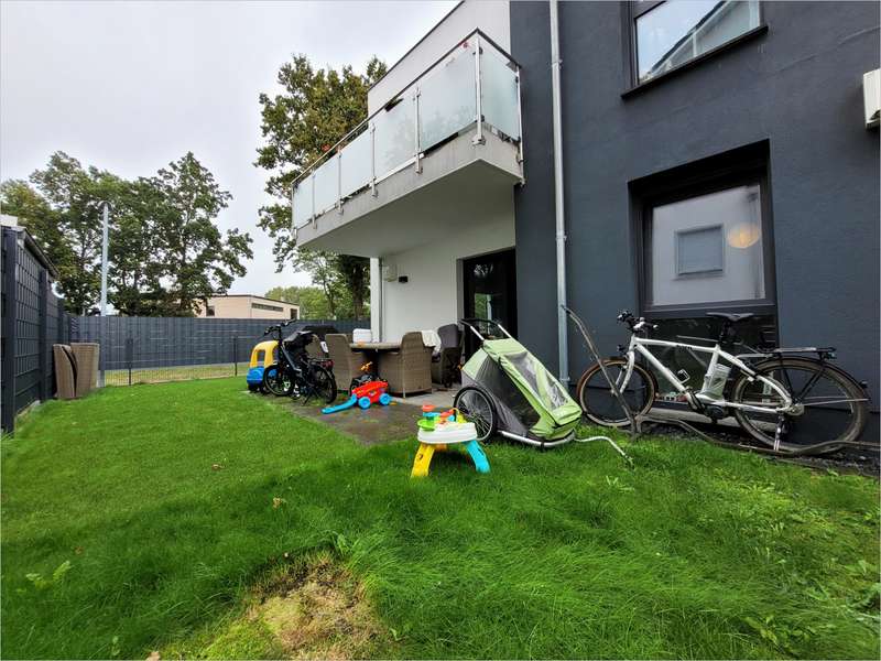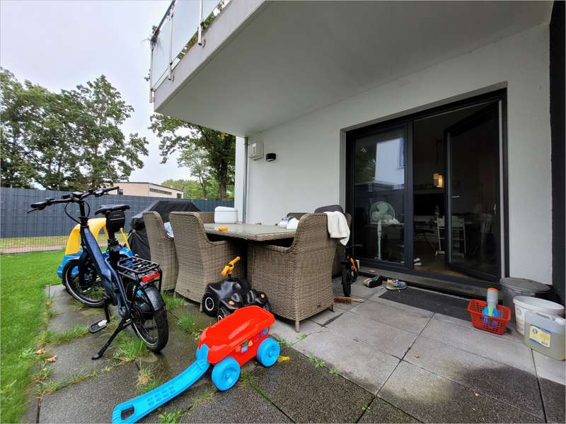 Der Garten und die Terrasse erreichen Sie entweder über das Wohnzimmer oder alternativ durch das separate Gartentor ohne die Wohnung betreten zu müssen. Zudem ist der Garten vollständig umzäunt und somit nicht von außen einsehbar. Auch ein niedliches Gartenhäuschen müssen Sie hier nicht vermissen.