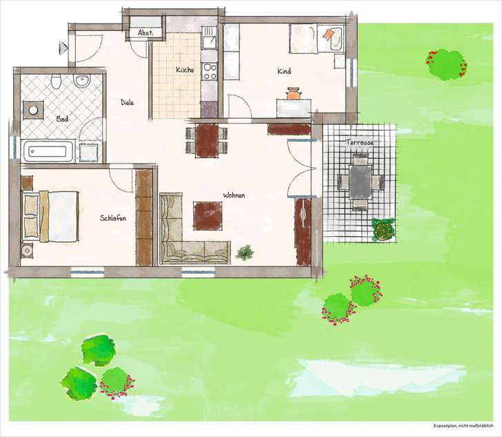 Größe: 81 qm, 3 Zimmer, Balkon, Einbauküche, Garten, Preis: 229000 €, Provision: 4,17% inkl. Mwst.Energie-Ausweis: