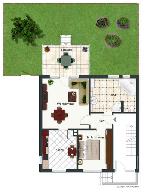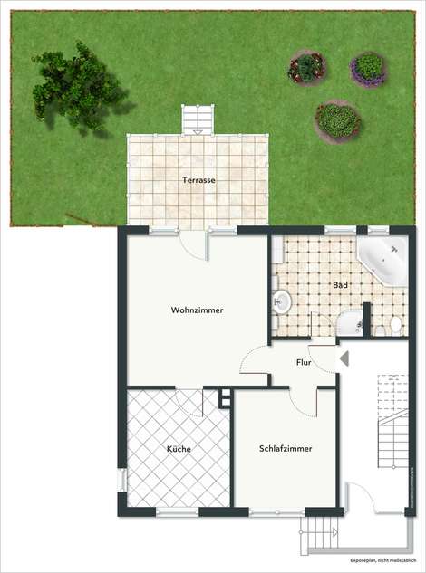 Anfrage sendenEin Haus im Haus! Top geschnittene und helle 2-Zimmerwohnung samt Terrasse, Garten und großem Bad!
