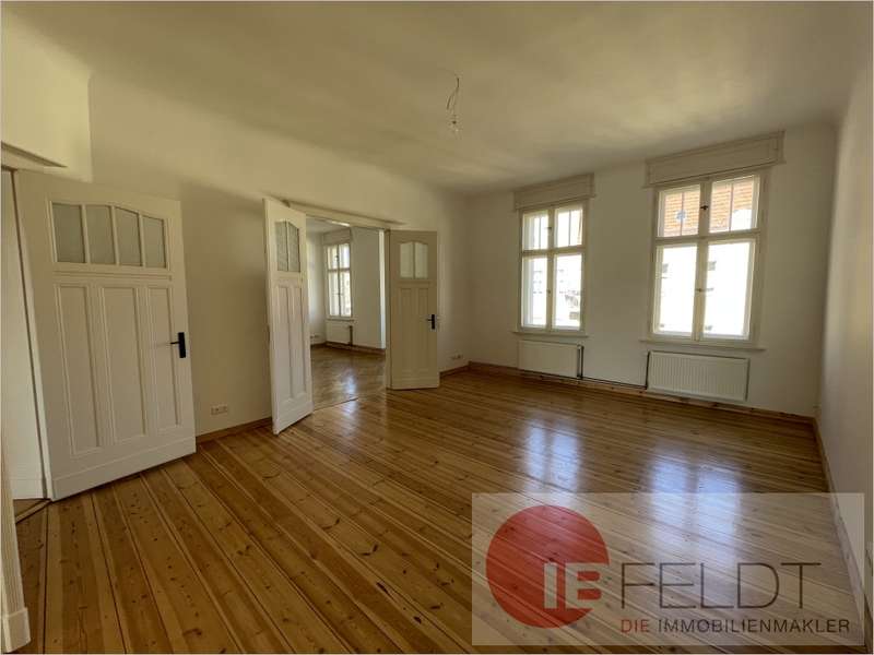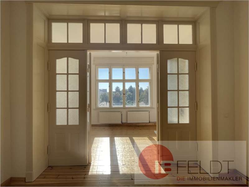 Die lichtdurchflutete Altbauwohnung befindet sich im zweiten Obergeschoss und verfügt über eine Wohnfläche von ca. 188 m². Diese verteilen sich auf einen Flur, fünf Zimmer, ein Bad, eine Küche mit einer Vorratskammer und einem Abstellraum sowie einen Wintergarten mit angrenzendem Balkon. Die Wohnung ist mit Parkett und Dielenboden ausgestattet. Die Beheizung erfolgt zentral über eine Gasetagenheizung.