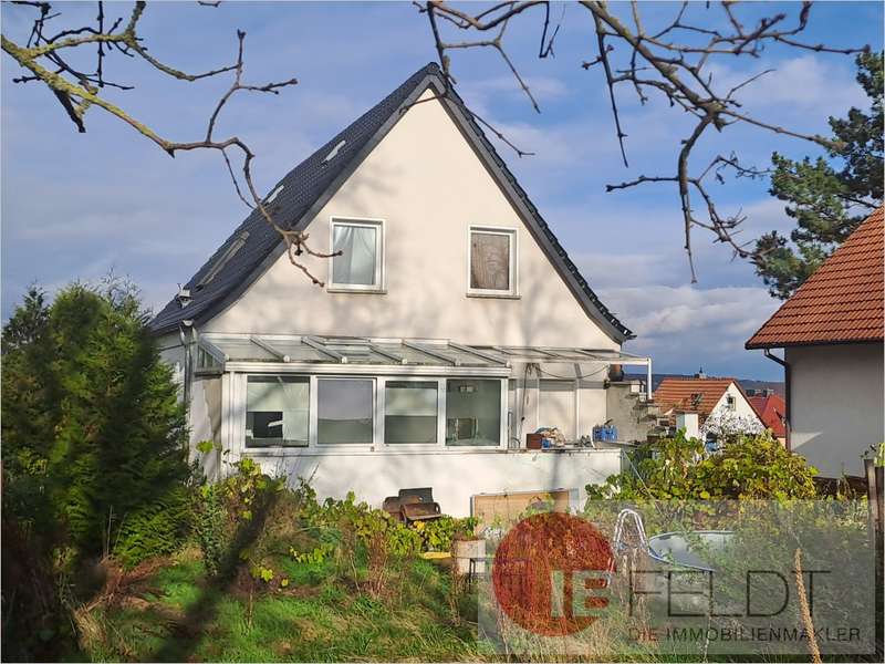 Bei der angebotenen Immobilie handelt es sich um ein 570 m² großes Grundstück, bebaut mit einem 1993 in Massivbauweise errichteten, freistehenden Einfamilienwohnhaus mit Wintergarten und Nebengebäude. Die Wohnfläche beträgt ca. 140 m². Diese verteilen sich auf das Erdgeschoss und Dachgeschoss.