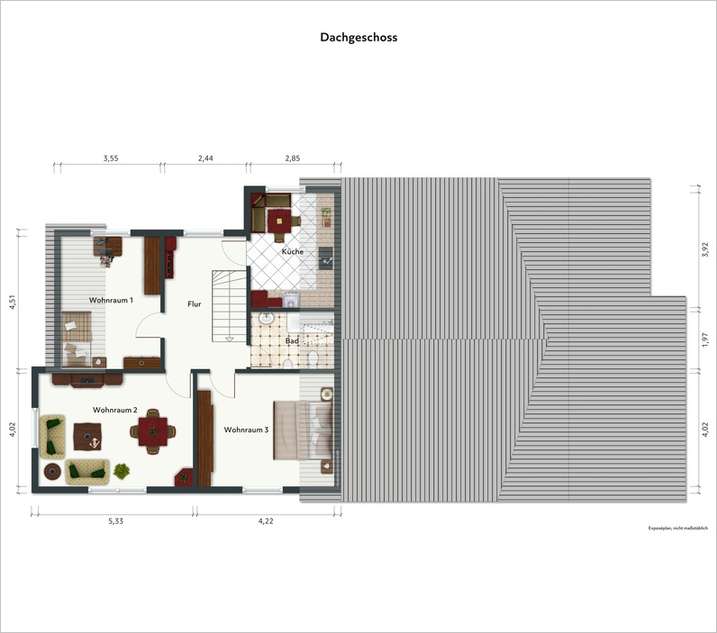 Durch die Raumaufteilung des Erd- und Obergeschosses, sowie durch das gesonderte Treppenhaus lassen sich beide Stockwerke, als in sich abgeschlossene Wohneinheiten, unabhängig voneinander nutzen.