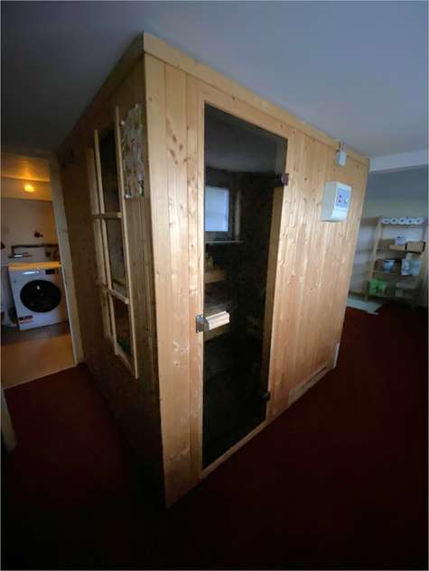 Im Kellergeschoss befinden sich ein Trockenraum, ein Waschraum, ein Wellnessraum mit Sauna und Ruhebereich sowie ein Heizraum, in der die gesamte Haustechnik untergebracht ist.