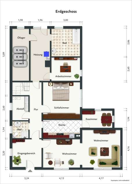 Beheizt wird das Objekt über eine Öl-Zentralheizung aus dem Jahr 1972. Für ausreichend Stellfläche sorgen drei Garagen auf dem Grundstück.